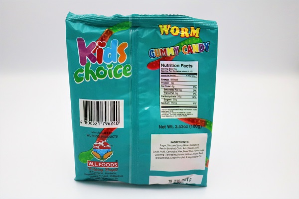 W.L Foods Kids Choice Worm Gummy Candy 100g.